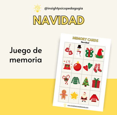 El juego de cartas memory es una actividad clásica que ayuda a mejorar la memoria y la concentración de los niños. En esta versión navideña, las cartas están decoradas con motivos propios de la época, como árboles de Navidad, renos, regalos y muñecos de nieve.
