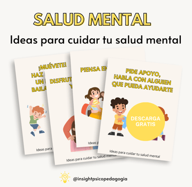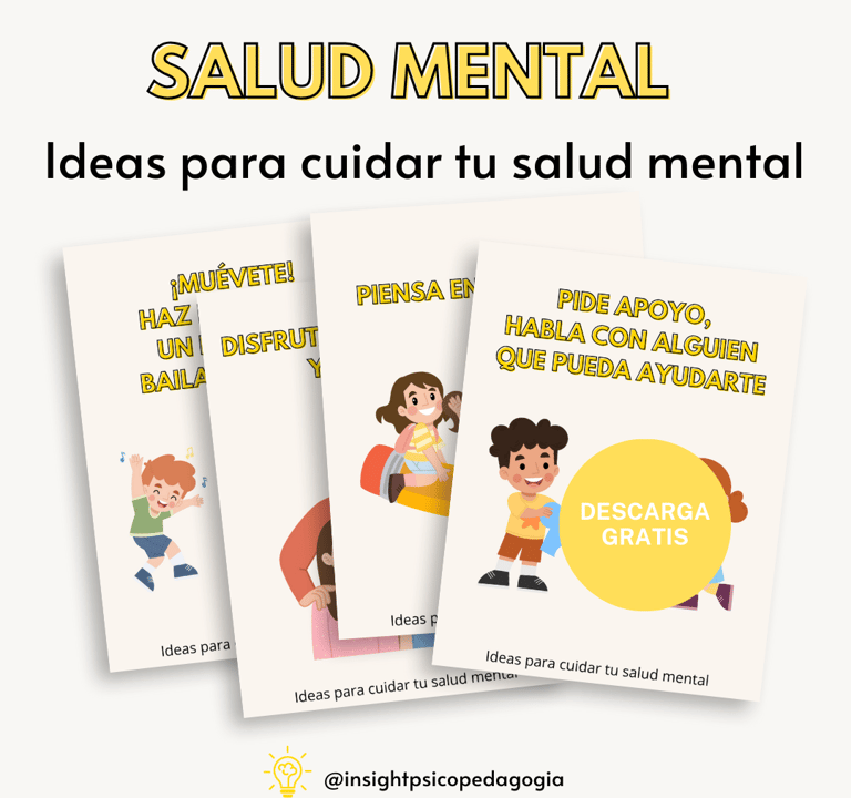 Además he preparado 15 carteles con "Ideas para cuidar la salud mental" que puedes descargar e imprimir. Son ideales para colgar en la clase como recordatorios de actividades que favorecen la autoestima y el autocuidado. O puedes imprimirlas como baraja de cartas y sacar una al azar para descubrir qué actividad podemos realizar en algún momento determinado.