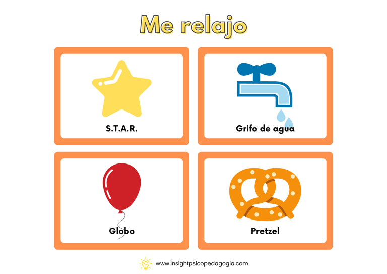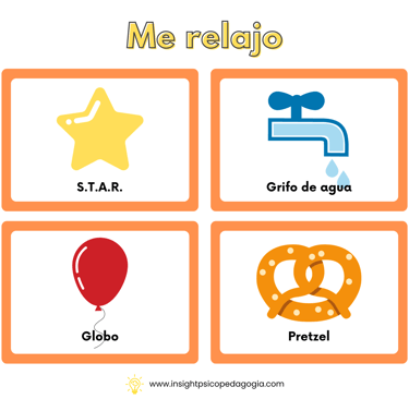 He preparado una lámina donde se representan los cuatro ejercicios, con la idea de visualizarlos y los tengan accesible para usarlos cuando necesiten auterregularse. Puedes descargarla de forma gratuita pinchando la imagen.